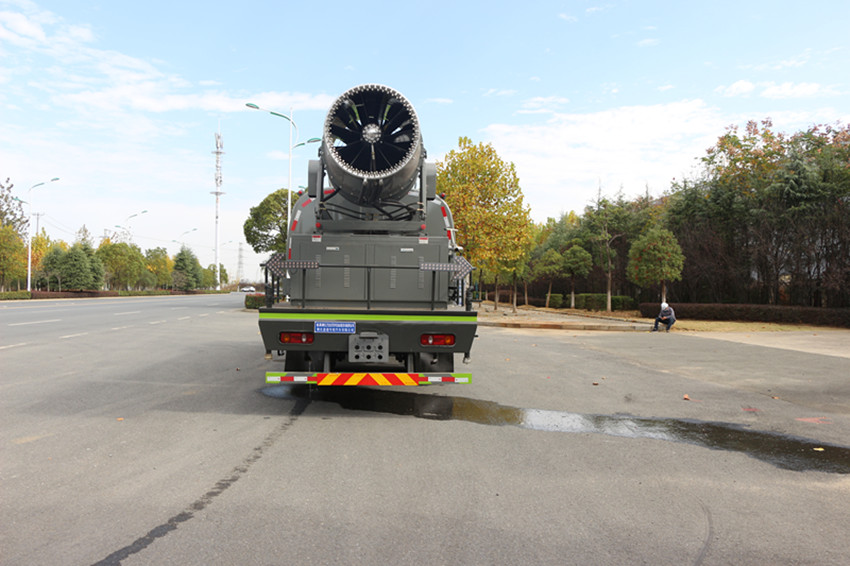 東風17方大型霧炮灑水車上裝配置: 1、罐體約為 17 方,可加裝 60-120 型霧炮 2、邊燈帶電,罐體尾部上方標配 2 個紅色示寬燈, 3、標配前噴為鴨嘴直沖,標配后沖,用戶可根據自己的需求,來調 整對沖位置。 4、花紋防滑平臺,炮筒后蓋為定制型螺栓卡扣, 5、前噴、后沖、后灑、側噴,綠化高炮開關球閥均采用 50 大通經 不銹鋼球閥, 6、新式軸承式水炮,更加耐用, 7、60-90 型水泵, 8、防腐法蘭墊片, 9、鋁制后灑,不易炸開 10、罐體自動焊(美國林肯焊機及電源),拼板自動焊接,封頭環 縫焊接,無氣孔,焊縫美觀。 11、側護網、后保險杠、均為螺栓連接,方便拆卸,維修方便。 12、塑料擋泥板,替代鐵擋泥板,更加輕便,用螺栓連接,方便拆 卸。 13、前部、后部主管連接處為 6 孔圓法蘭,不易沖墊
