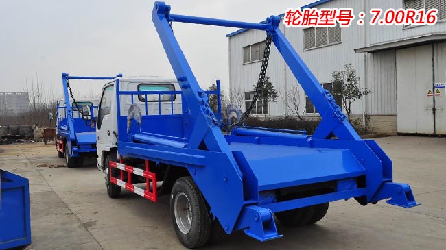 五十鈴擺臂式垃圾車,慶鈴五十鈴底盤,600P駕駛室,五十鈴130馬力發動機,五十鈴MSB5檔變速箱,帶空調,動力轉向,前橋2.5噸,后橋4.8噸,帶ABS,7.00R16鋼絲胎,雙回路式油剎,單排可反轉。