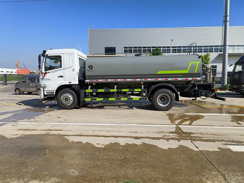 東風華神 14.3 方灑水車產品配置 1.底盤配置: 發動機玉柴 200 馬力(六缸),法士特 8 檔變速箱,前橋 3.6 噸,后橋 9 噸,10.00 鋼絲胎,軸距 4500,斷氣剎,ABS,空調,中控 鎖,電動玻璃,助力,多功能方向盤,氣囊座椅2.上裝配置: 1、罐體約為 14.3 方, 2、邊燈帶電,罐體尾部上方標配 2 個紅色示寬燈, 3、標配前噴為鴨嘴直沖,標配后沖,用戶可根據自己的需求,來調 整對沖位置。 4、沖孔平臺(承載能力加強),炮筒后蓋為定制型螺栓卡扣, 5、前噴、后沖、后灑、側噴,綠化高炮開關球閥均采用 50 大通經 不銹鋼球閥, 6、新式軸承式水炮,更加耐用, 7、60-90 型水泵, 8、防腐法蘭墊片, 9、鋁制后灑,不易炸開 10、罐體自動焊(美國林肯焊機及電源),拼板自動焊接,封頭環 縫焊接,無氣孔,焊縫美觀。 11、側護網、后保險杠、均為螺栓連接,方便拆卸,維修方便。 12、塑料擋泥板,替代鐵擋泥板,更加輕便,用螺栓連接,方便拆 卸。 13、前部、后部主管連接處為 6 孔圓法蘭,不易沖墊