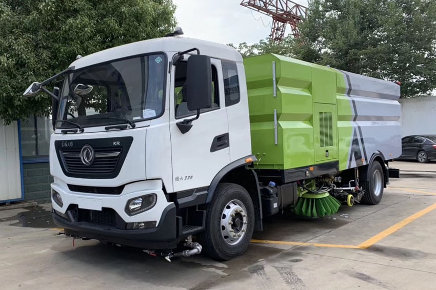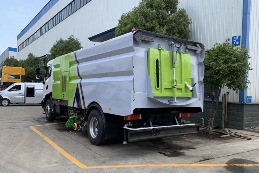 東風天錦洗掃車具有路面清洗、路面清掃路緣和路緣石立面洗刷、低壓沖洗、噴霧 除塵等多功能。有“全洗掃”、 “左洗掃”、 “右洗掃”、 “全掃”、 多種作 業(yè)模式可選擇。選擇“全洗掃”模式清洗廣場和路面,清洗效率高效果好,洗 凈率達 95%以上。選擇“左洗掃”或“右洗掃”模式清洗路面和路緣 。需要進 行路面清掃或路面保潔作業(yè)時,可選擇掃路模式。需要噴霧除塵時,可開啟噴霧裝置,進行噴霧除塵作業(yè)。可以像灑水車一樣對路面進行低壓沖洗作業(yè)。