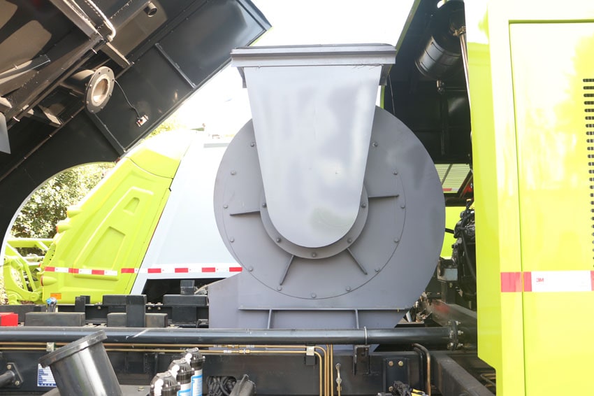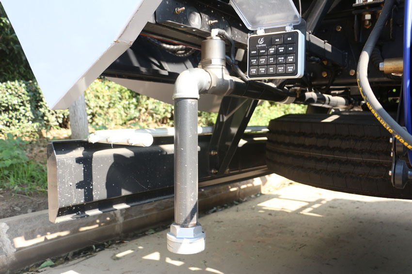 九、東風天錦洗掃車的污水箱內(nèi)采用大平面斜坡結(jié)構(gòu),最大卸料角度可達50度,更易于傾倒垃圾。污水箱內(nèi)設置了防溢滿報警裝置和高壓噴淋清洗裝置,防溢滿報警裝置可防止污水作業(yè)時從吸管溢出,造成二次污染;高壓噴淋清洗裝置在傾倒垃圾后可對污水箱進行自動清洗,大大減輕了操作人員的勞動強度。