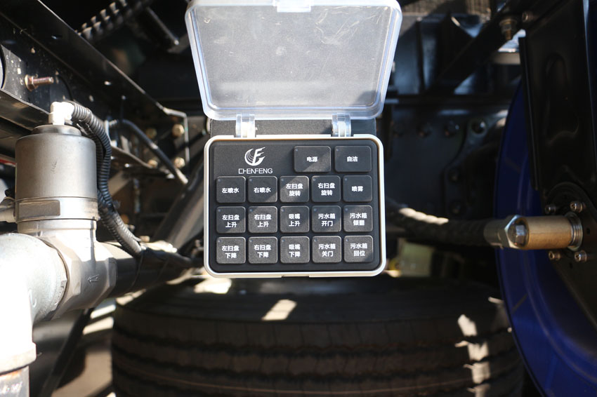 四、在一鍵控制技術基礎上增加副發(fā)動機手動油門控制系統(tǒng),可根據(jù)路況獨立調(diào)節(jié)油門大小,有效增強洗掃效果,減少油耗。