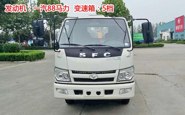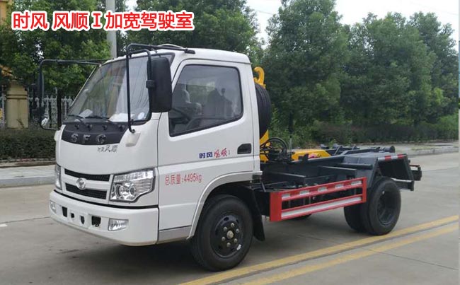 時風風順勾臂式垃圾車,風順Ⅰ加寬駕駛室,一汽88馬力發動機,5檔變速箱,軸距2.7米,6.50-16輪胎,帶方向助力、ABS,油剎。