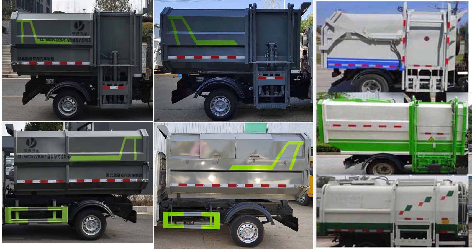 福田小型3方掛桶垃圾車該車專用裝置為垃圾箱體、提升機構,主要用于垃圾的收集和轉運作業.ABS系統控制方式是雙參數控制,ABS系統控制器型號是YF9,ABS系統控制器生產企業是武漢元豐汽車電控系統有限公司.發動機DAM15KR,DAM16KR分別對應的最大凈功率為80kW,85kW,分別對應最高車速100km/h,110km/h.發動機及油耗申報值(L/100km)對應關系為:DAM15KR/8.3,DAM16KR/8.7.該車可選裝直接供電式ETC車載裝置.隨底盤選裝新前格柵,可選裝帶晝行燈,選裝不帶晝行燈.該車型整備質量包含備胎、隨車工具.貨箱質量:920kg.貨箱材質為Q235鋼板,底板厚度3mm,左右前后側板厚度為3mm.選裝箱體側面樣式.