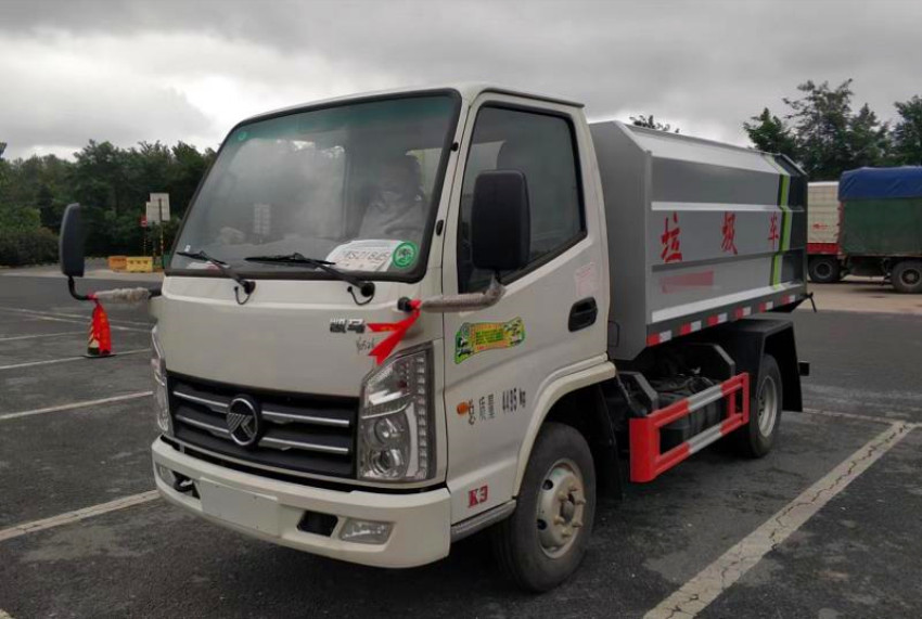 箱體容積3~4立方米,碳鋼邊三底四,國(guó)產(chǎn)油泵、多路閥、取力器、油缸,卸料方式為底部雙杠液壓舉升自卸,駕駛室外操作,鐵桶掛架,后門(mén)機(jī)械鎖緊,手動(dòng)開(kāi)門(mén),可選液壓開(kāi)門(mén)。