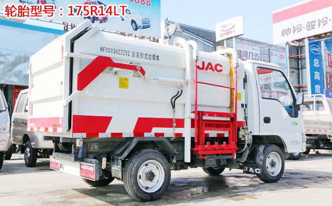江淮康鈴X1掛桶式垃圾車,柳汽87馬力,5檔變速箱,1.4T后橋,2400軸距,175R14LT(后單胎),帶暖風、空調(diào)、可調(diào)方向盤、電預熱、電熄火、不翻轉(zhuǎn)、金屬漆。