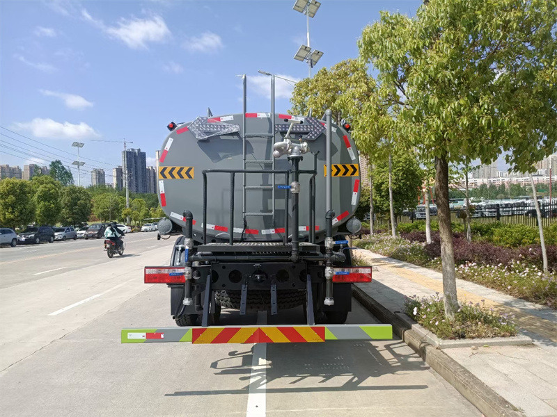 東風12方灑水車標配前噴(鴨嘴)、后沖、后灑、側噴、后置式工作 平臺,平臺上配置綠化水炮(可 360°旋轉,既可以調成柱狀,也可 以調成霧狀,更可以調成直沖狀、大雨、中雨、小雨、毛毛雨),配 備優質大功率專用灑水泵(可自吸自排,可從河里或池塘抽水到罐體), 取力器,雜物過濾網,消防接口,自流球閥系統、取力器、球閥、濾網 均為國家標準產品