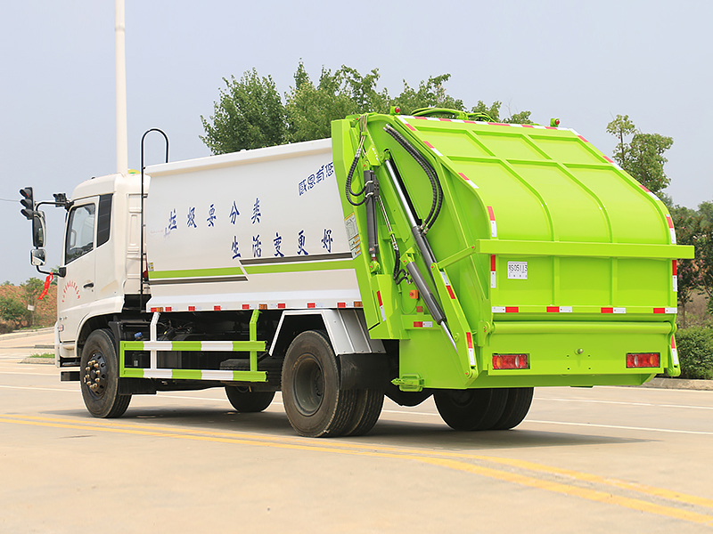 新款平面弧形廂體,廂體材料為武鋼優質碳鋼,外箱尺寸:8890×2500×3300mm,有效壓縮容積12-14立方,PLC一鍵操作控制,手電一體操作模式,兩側雙電控,帶駕駛室內操作,底板支撐加強,雙向壓縮,開放式易清潔污水箱。壓縮式垃圾車采用機電液一體化技術,借助機、電、液聯合自動控制系統、電腦控制、手動操作系統,通過填裝器和推鏟等專用裝置,實現垃圾倒入、壓碎或壓扁、強力裝填,把垃圾擠入車廂并壓實和推卸,污水全部進入污水收集箱,解決了垃圾運輸過程中的二次污染的問題。壓縮式垃圾車具有自動反復壓縮以及蠕動壓縮功能,壓縮比高、密封性好、裝載量大﹑操作方便、環保性好﹑整車利用功率高等優點。