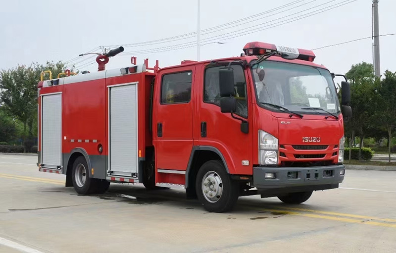 重慶五十鈴2-3噸消防車(chē)慶鈴QL1070A6HWY底盤(pán)改裝,平頭雙排駕駛室,液壓翻轉(zhuǎn),五十鈴4KH1CN5LS發(fā)動(dòng)機(jī),98馬力,國(guó)五排放,罐體容積2-3立方米;整車(chē)結(jié)構(gòu)緊湊,方便靈活,動(dòng)力性能好,車(chē)速高,能自由進(jìn)出鄉(xiāng)村狹窄道路及小區(qū),具有大型消防車(chē)的全套消防功能,上裝箱體的上裝骨架全部采用引進(jìn)歐洲技術(shù)生產(chǎn)的鋁合金型材制造,整車(chē)的重量減少,機(jī)動(dòng)性能和整車(chē)載重量提高。除了裝備消防水泵及器材以外,還設(shè)有較大容量的貯水罐及水槍、水炮等。可將水和消防人員輸送至火場(chǎng)獨(dú)立進(jìn)行撲救火災(zāi)。也可以從水源吸水直接進(jìn)行撲救,或向其他消防車(chē)和滅火噴射裝置供水。在缺水地區(qū)也可作供水、輸水用車(chē),主要適用于大中城鎮(zhèn)、鄉(xiāng)村狹窄街道、城市小區(qū)、繁忙的批發(fā)市場(chǎng)等場(chǎng)所的一般物質(zhì)滅火,閑暇時(shí)可用于園林噴灌、道路清灑。