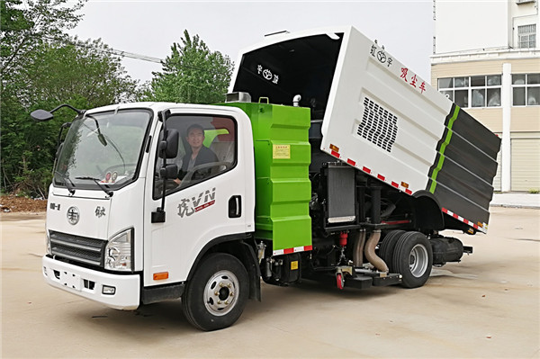 上裝配置:該車型在二類底盤上進(jìn)行改裝,加裝副發(fā)動(dòng)機(jī)、風(fēng)機(jī)、清水箱、垃圾箱、掃刷、后置吸盤,掃盤降塵系統(tǒng),液壓系統(tǒng)、專用裝置電控系統(tǒng)和副車架等改裝而成。