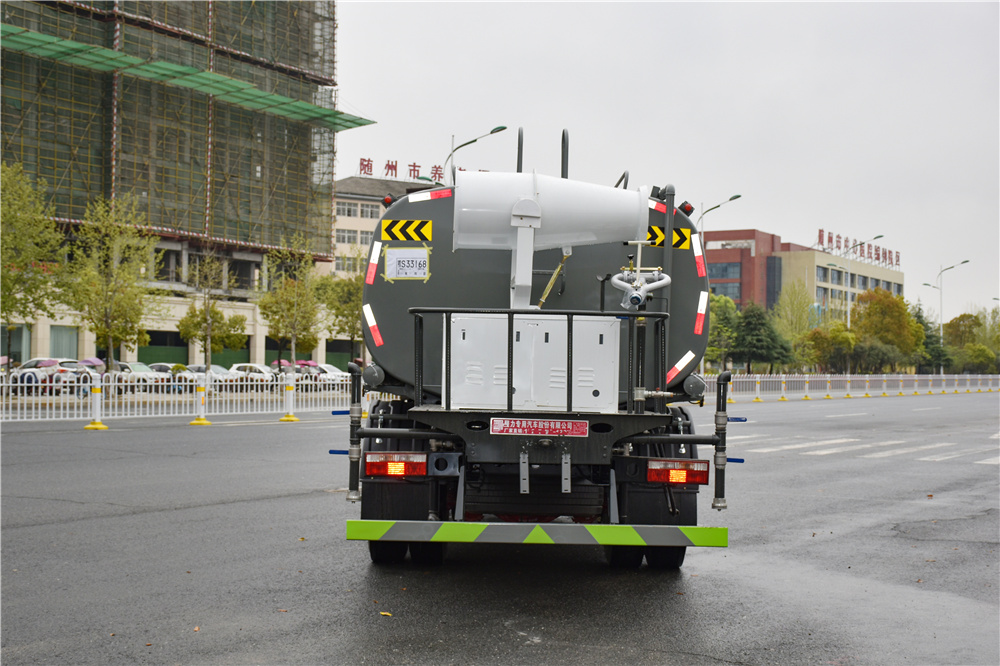 用功能配置:罐體實際容積約為12--14--16立方米,采用武鋼優質碳鋼板卷壓成型,自動焊接。配備專用灑水泵,自吸自排,前噴后灑、側噴、后工作平臺及灑水高壓炮。灑水泵自吸高度為6米左右,整車灑水寬度14米左右,后工作平臺高壓水炮上下左右360°旋轉可調成:直沖狀、大雨、中雨、霧狀、有效射程≥28米,整車帶接頭、水位計,自流閥。后工作平臺主管路帶1寸澆花接口,附送2根3米水管,1個爬梯,兩側及后保險杠。