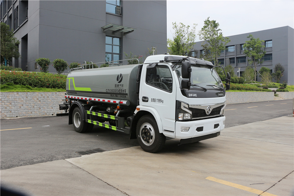 專用功能配置:罐體實際容積約為9.35立方米,采用武鋼優質碳鋼板卷壓成型。配備專用灑水泵,自吸自排,前噴后灑、側噴、后工作平臺及灑水高壓炮。灑水泵自吸高度為6米左右,整車灑水寬度14米左右,后工作平臺水炮可調成:直沖狀、大雨、中雨、小雨、毛毛雨,有效射程≥28米,整車帶接頭、水位計,自流閥。后工作平臺主管道有一個一寸的澆花接口,附送2根3米水管,1個爬梯,兩側及后保險杠。