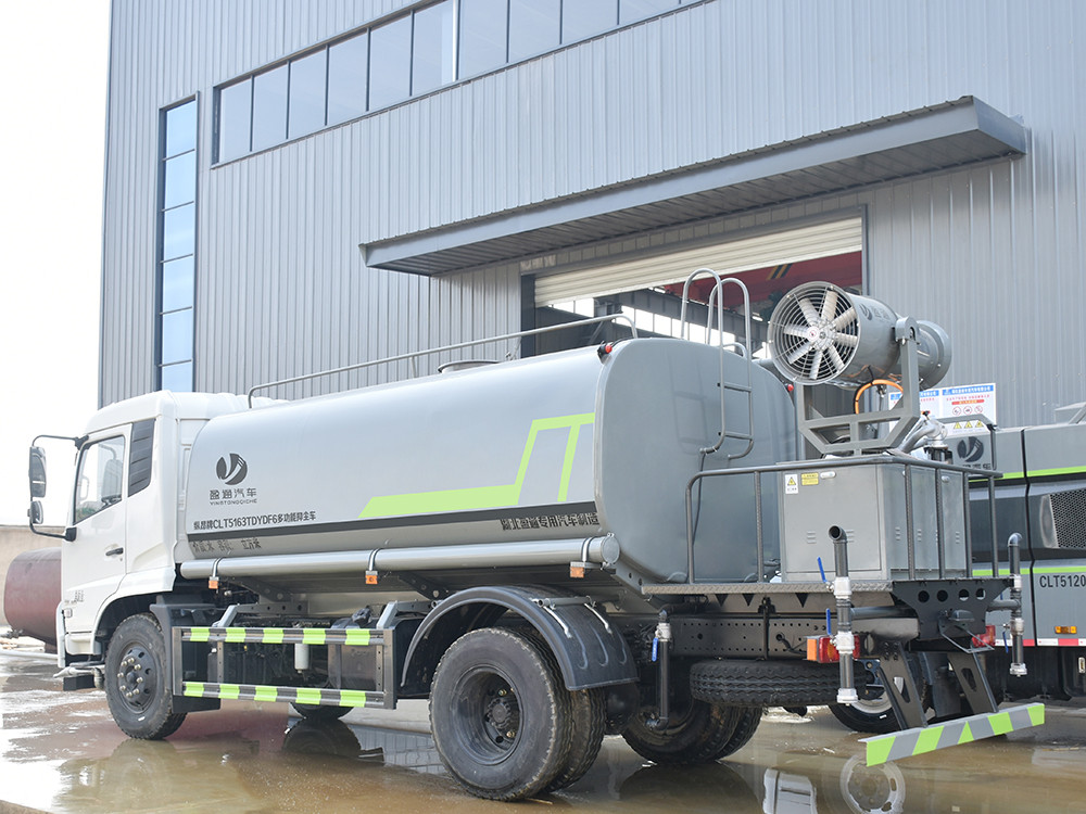 東風天錦 12 方抑塵車-灑水車產品主要技術參數 序號 名稱 型號、規格 1 整車型號 CLT5180TDYDF6 型多功能抑塵車 2 發動機型號 B6.2NS6B210 3 發動機馬力/功率 康明斯 210 馬力/154KW 4 發動機排量 6200ML 5 變速箱 東風 6 檔 6 輪胎規格 10.00 鋼絲胎 7 軸距 4700 8 總質量 18000KG 9 整備質量 8000KG 10 額定載質量 9805KG 11 整車尺寸(長×寬×高) 8.6*2.5*3.2 12 罐體容積 12 方 13 燃料種類 柴油 14 排放標準 國六 15 水泵型號 60/90 16 罐體材質 Q235 碳鋼