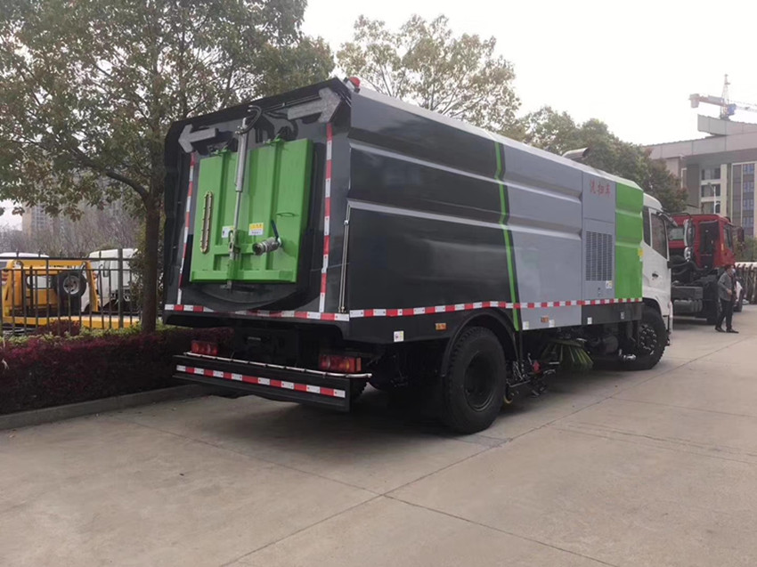 洗掃車具有路面清洗、路面清掃 路緣和路緣石立面洗刷、低壓沖洗、噴霧除塵等多功能。有“全洗掃”、 “左洗掃”、 “右洗掃”、 “全掃”、 多種作業模式可選擇。選擇“全洗掃”模式清洗廣場和路面,清洗效率高效果好,洗凈率達95%以上。選擇“左洗掃”或“右洗掃”模式清洗路面和路緣 。需要進行路面清掃或路面保潔作業時,可選擇掃路模式。需要噴霧除塵時,可開啟噴霧裝置,進行噴霧除塵作業。可以像灑水車一樣對路面進行低壓沖洗作業。