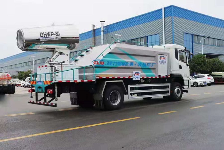 比亞迪T8純電動10噸抑塵車-霧炮車整車性能:側掛式磷酸鐵鋰蓄電池機箱,質保五年;駕駛室一鍵操作控制系統;罐體碳鋼材質或不銹鋼材質;后平臺加裝80米全自動霧炮機組,霧化降塵作用。