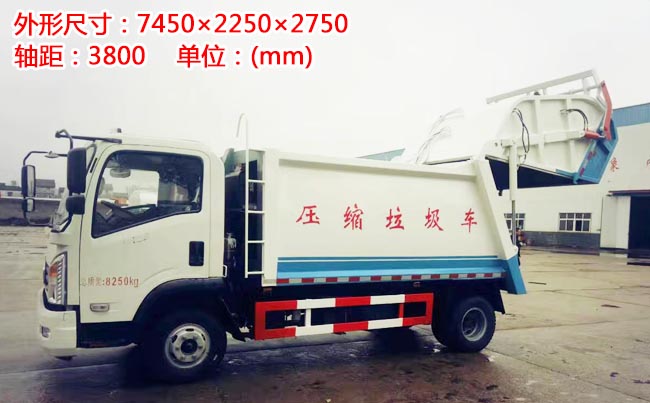垃圾車容積7~8m3,箱體邊4底4,內置推板、刮板,底部有污水箱,采用國產內知名油缸、油泵、多路閥,后反轉樣式為掛桶式后翻轉。